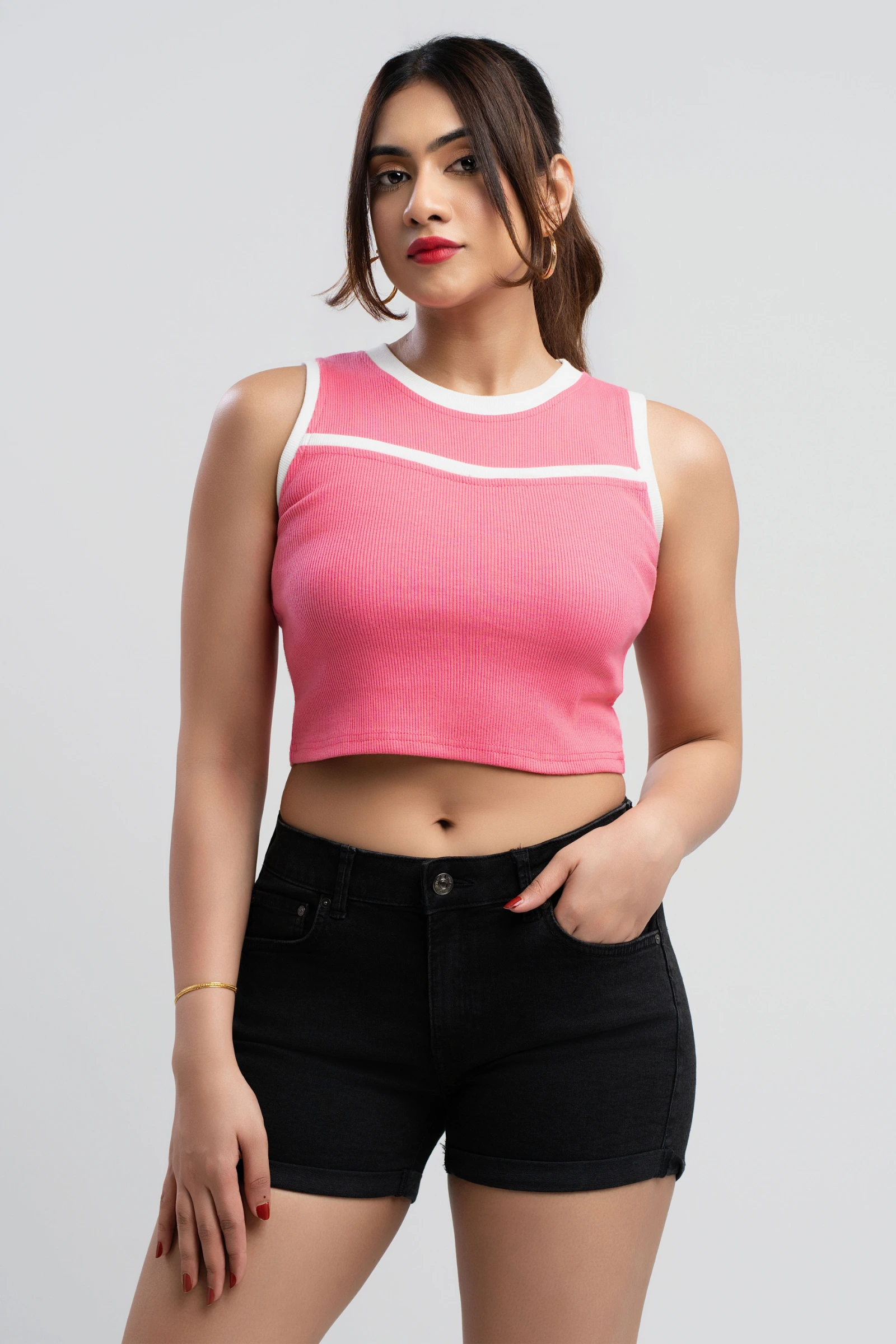 Effortless style meets ultimate comfort in our Tee Love Contrast Binding Crop Tank Top. Crafted from...