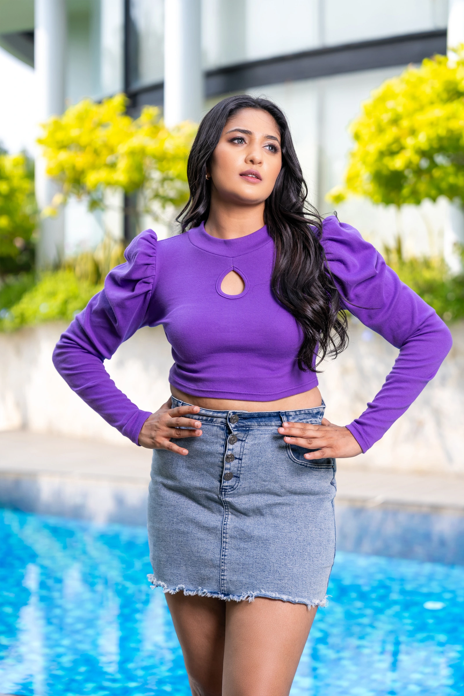 Adorable and flirty, the Tee Love Front Hole Puff Sleeve Crop Top features playful puff sleeves and ...