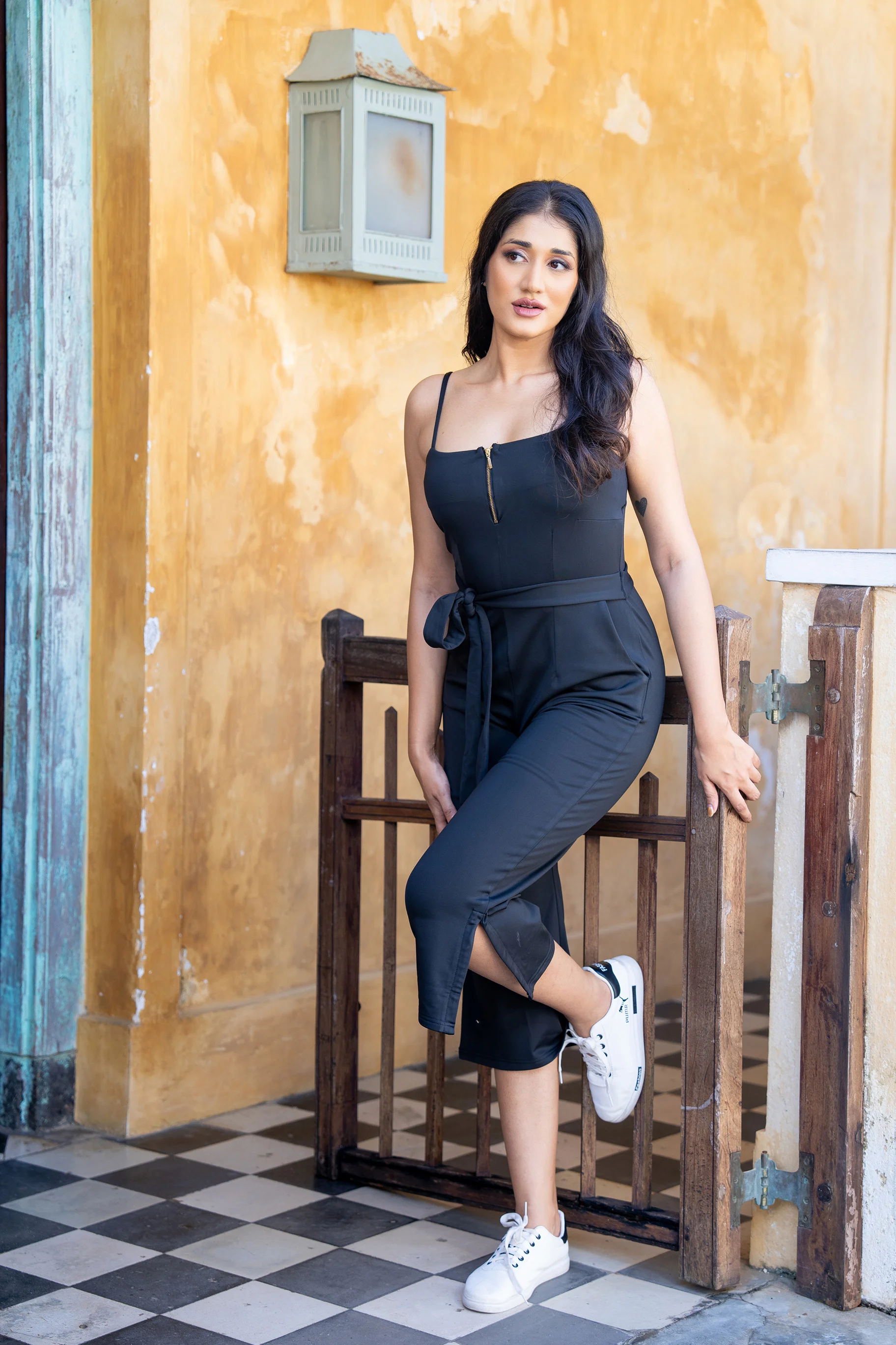 Stylish and comfortable, this Tee Love jumpsuit features a flattering front zipper and trendy straps...