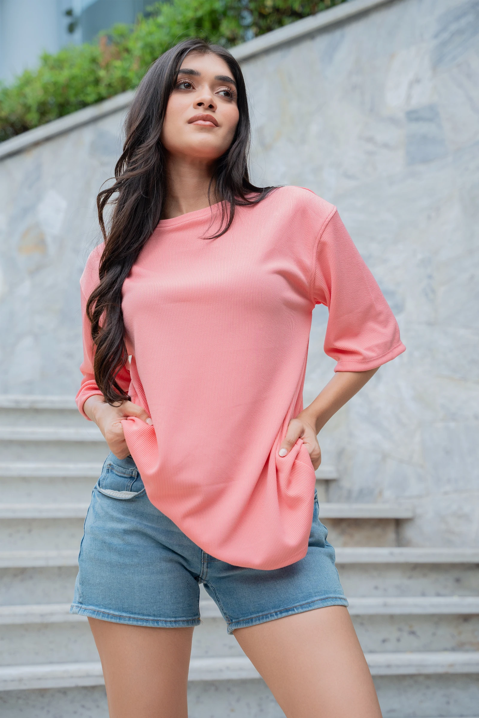 Relaxed fit, oversized tee in a classic rib knit. Soft, comfortable, and perfect for everyday wear....