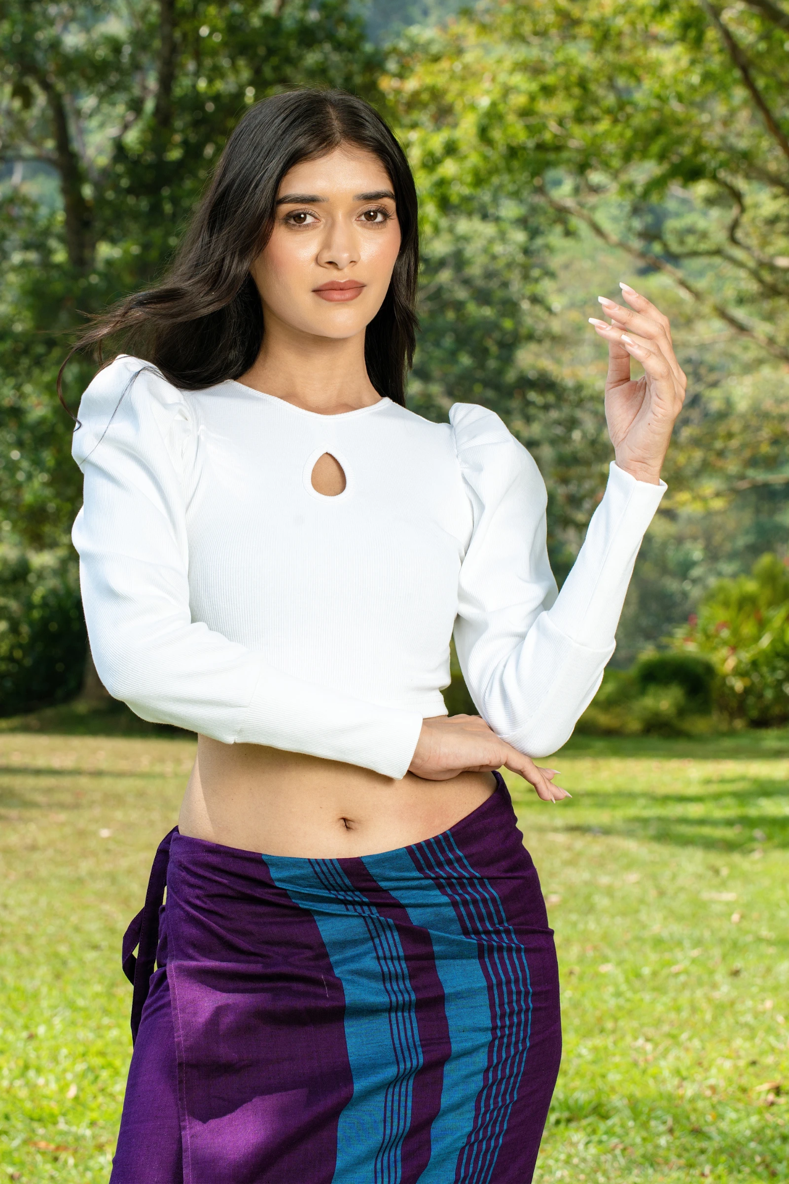 This Tee Love Neck Key Hole Puff Long Sleeve Crop Top offers a chic and playful silhouette. Featurin...