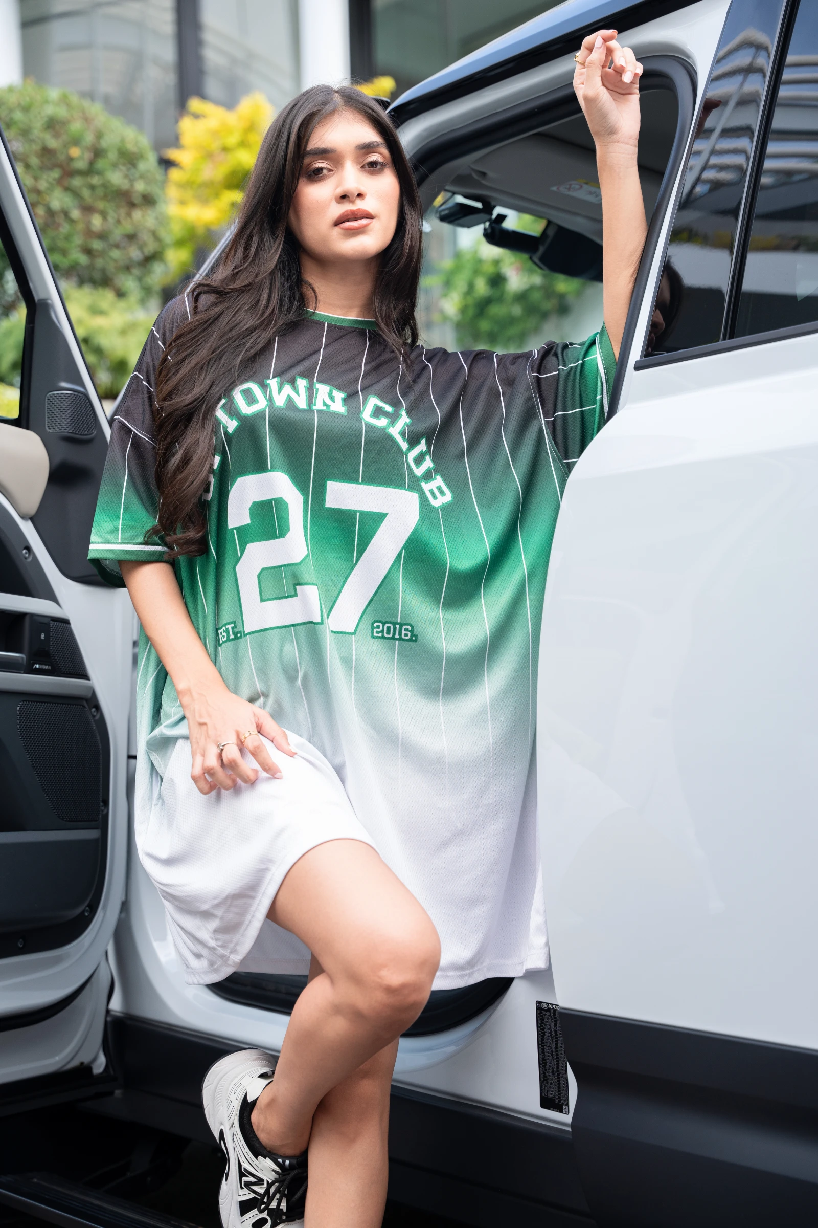 Relaxed fit, oversized tee dress featuring a bold "Tee Love Number 27" print. Perfect for casual ev...