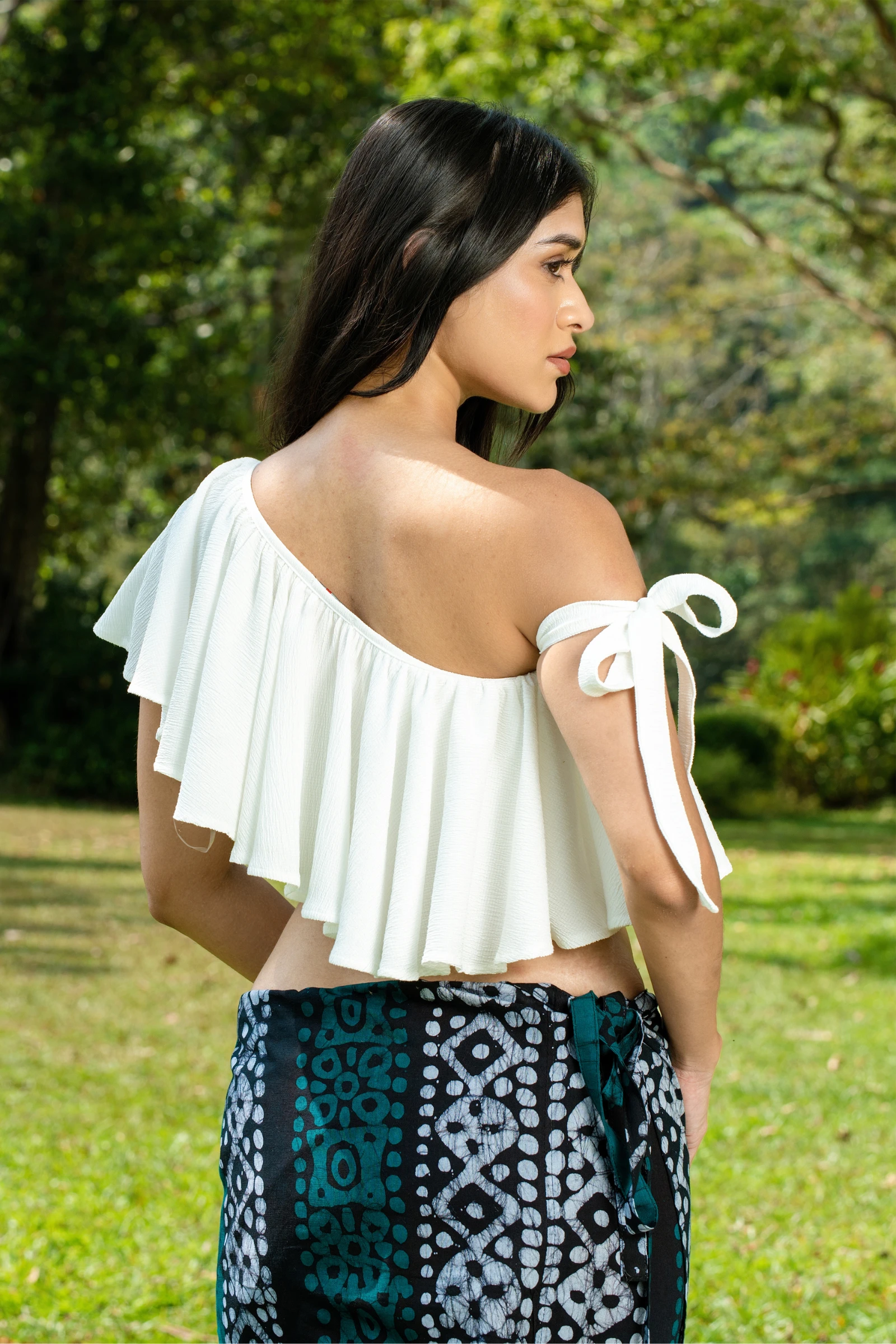 Introducing the Tee Love One Shoulder Ruffled Crop Top, a flirty and fashionable addition to your wa...