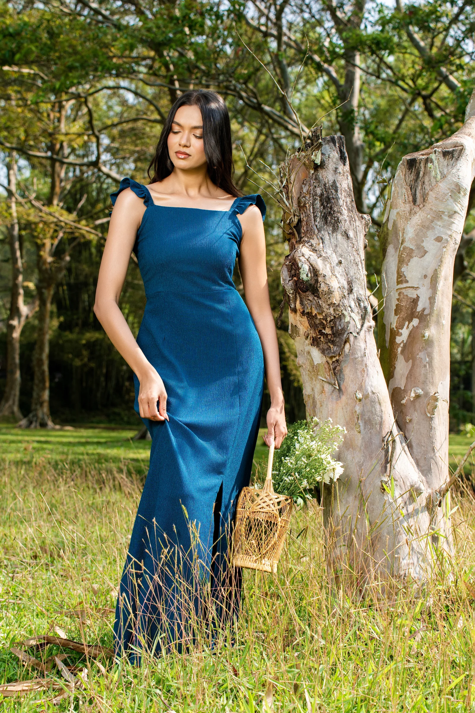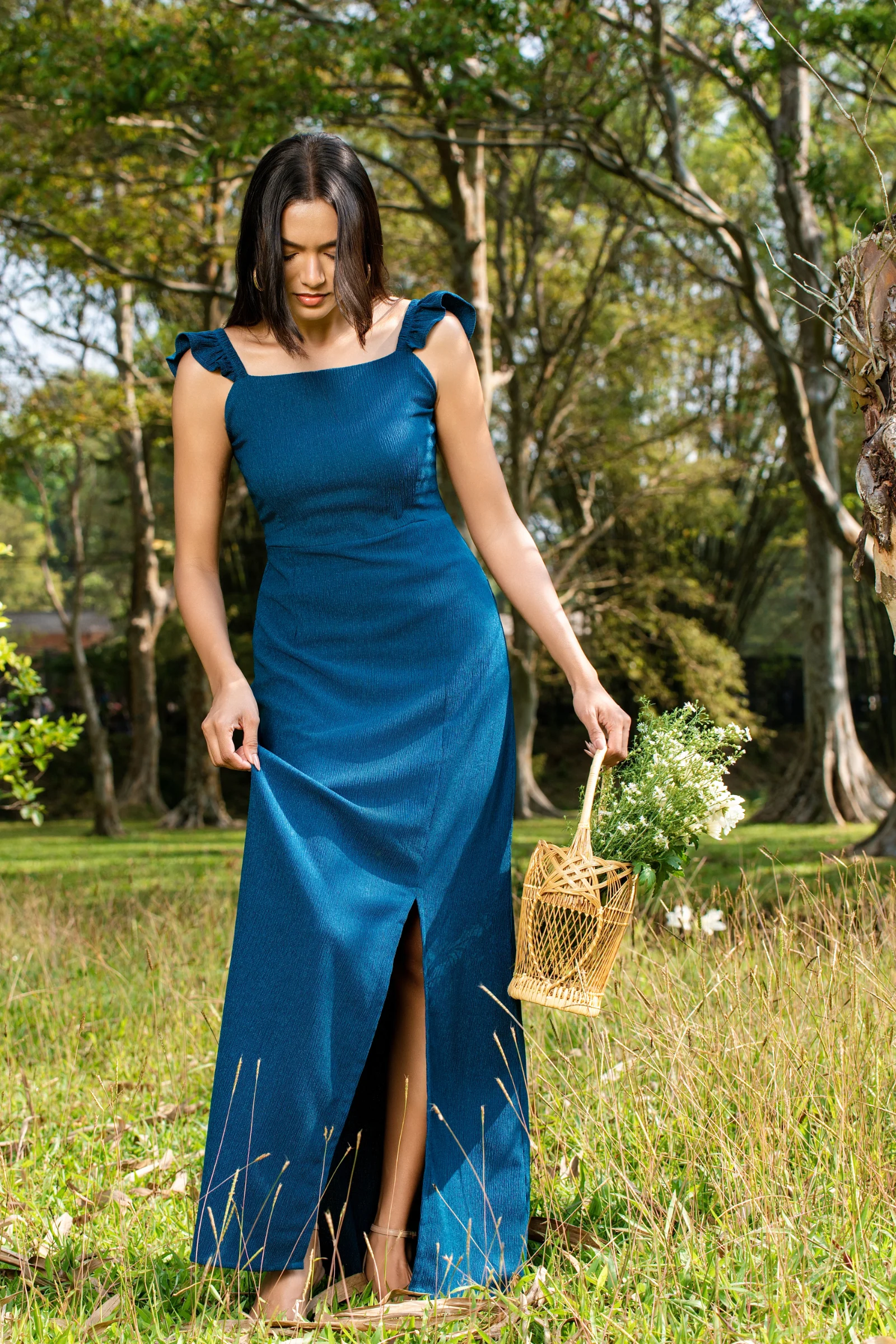 Effortless elegance meets flirty charm in the Tee Love Ruffle Straps Front Side Slit Maxi Dress. Thi...