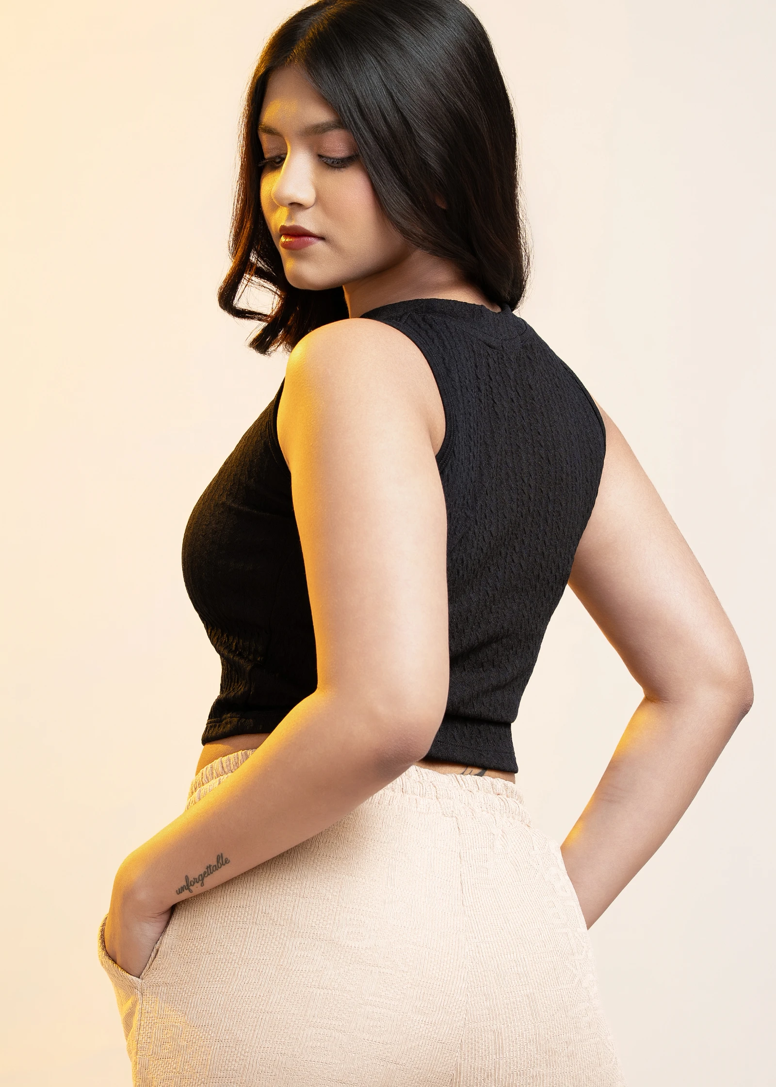 The Tee Love Textured High Neck Tank Crop Top is a stylish and versatile addition to your wardrobe. ...