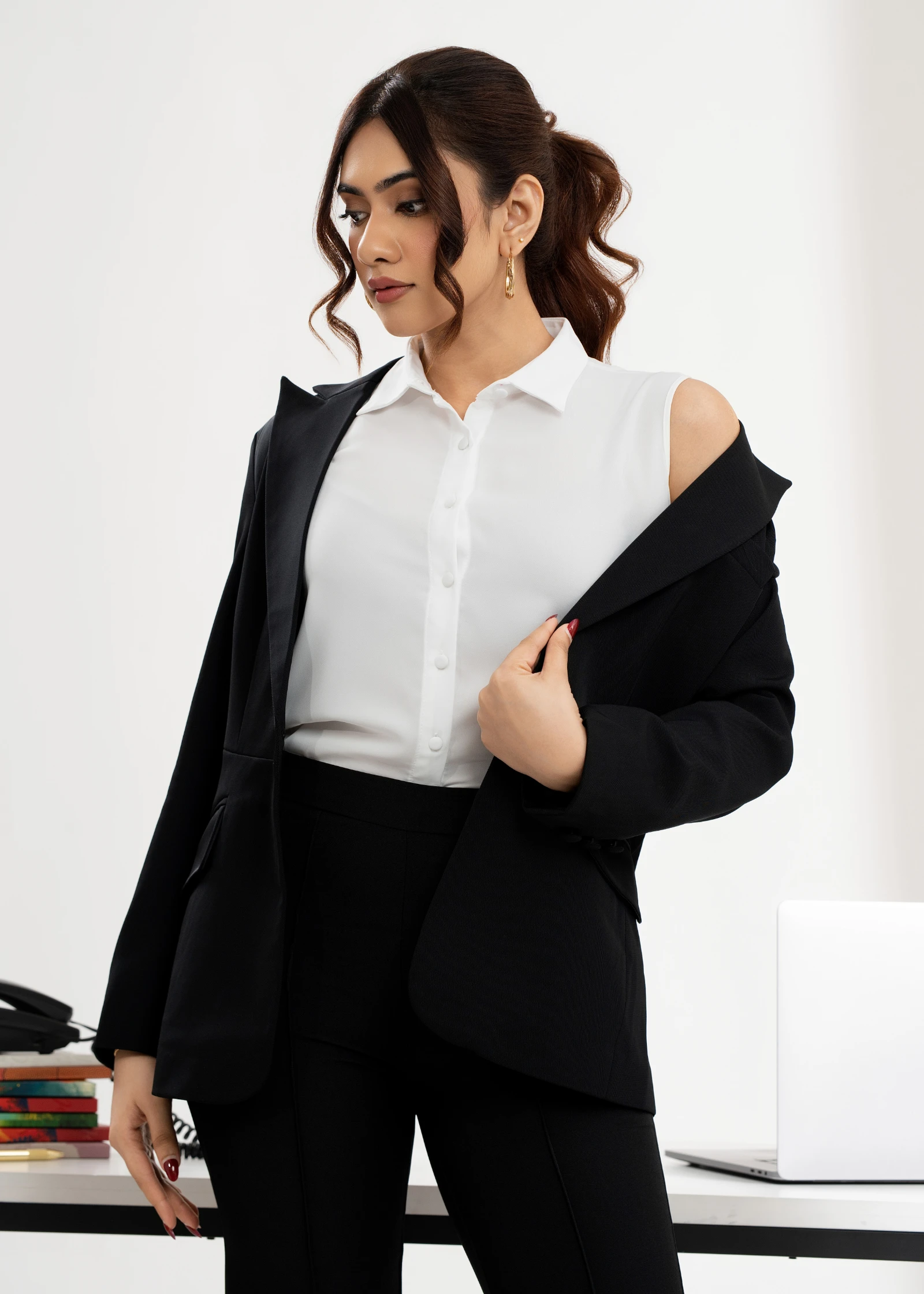 Introducing the Uptown Black Notch Collar Blazer. This essential piece blends timeless style with mo...