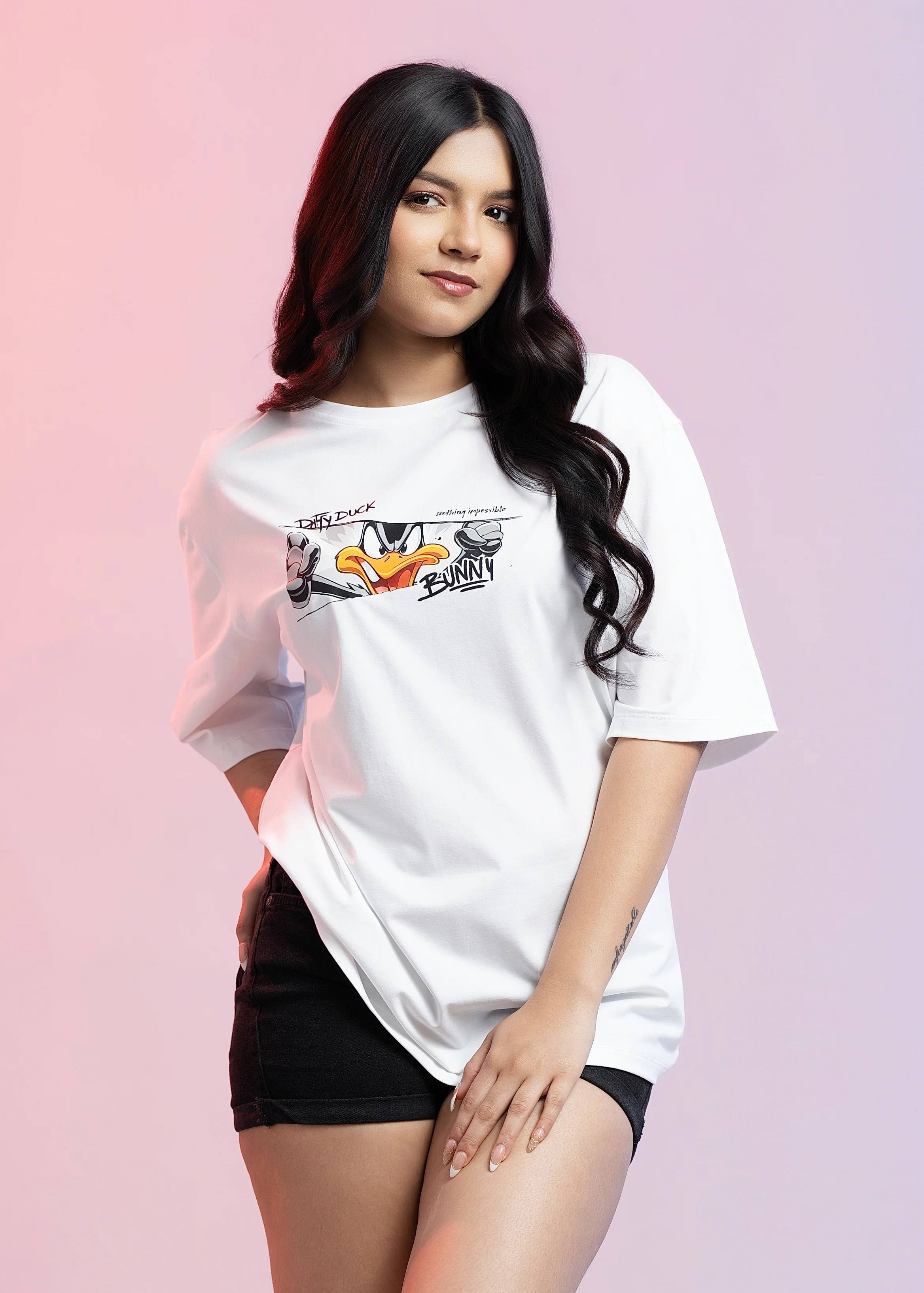 Step out in retro charm with the "Uptown" Daffy Duck Oversized T-Shirt. This comfortable tee feature...