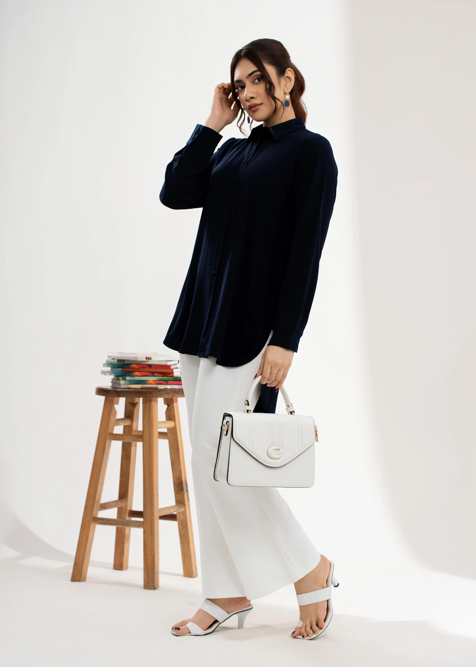 Introducing the Uptown Dark Blue Shirt Collar Tunic Top. Effortlessly chic and versatile, this tunic...