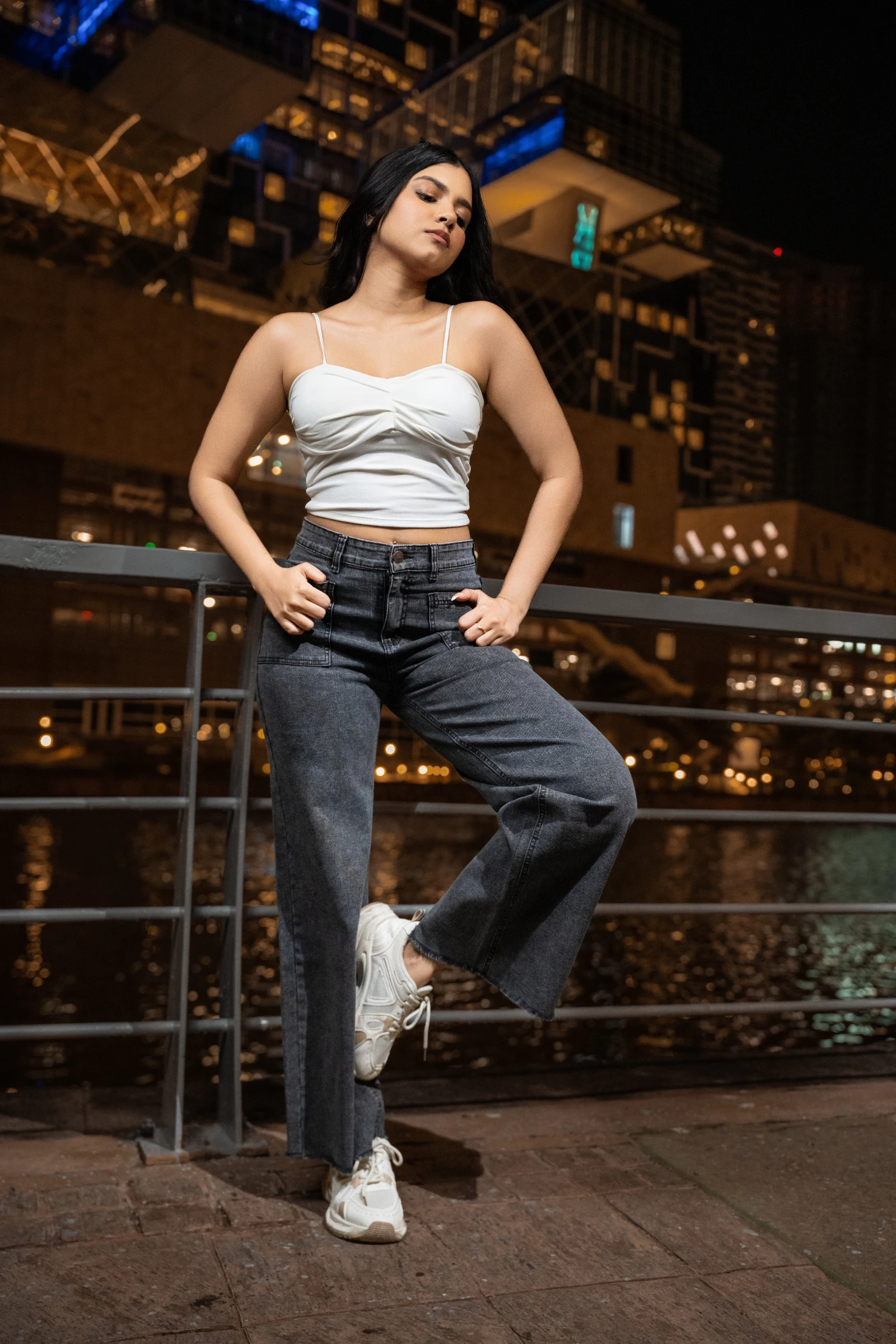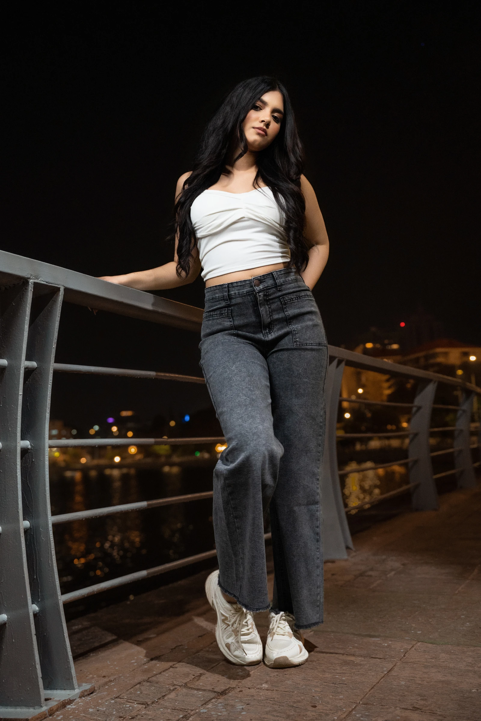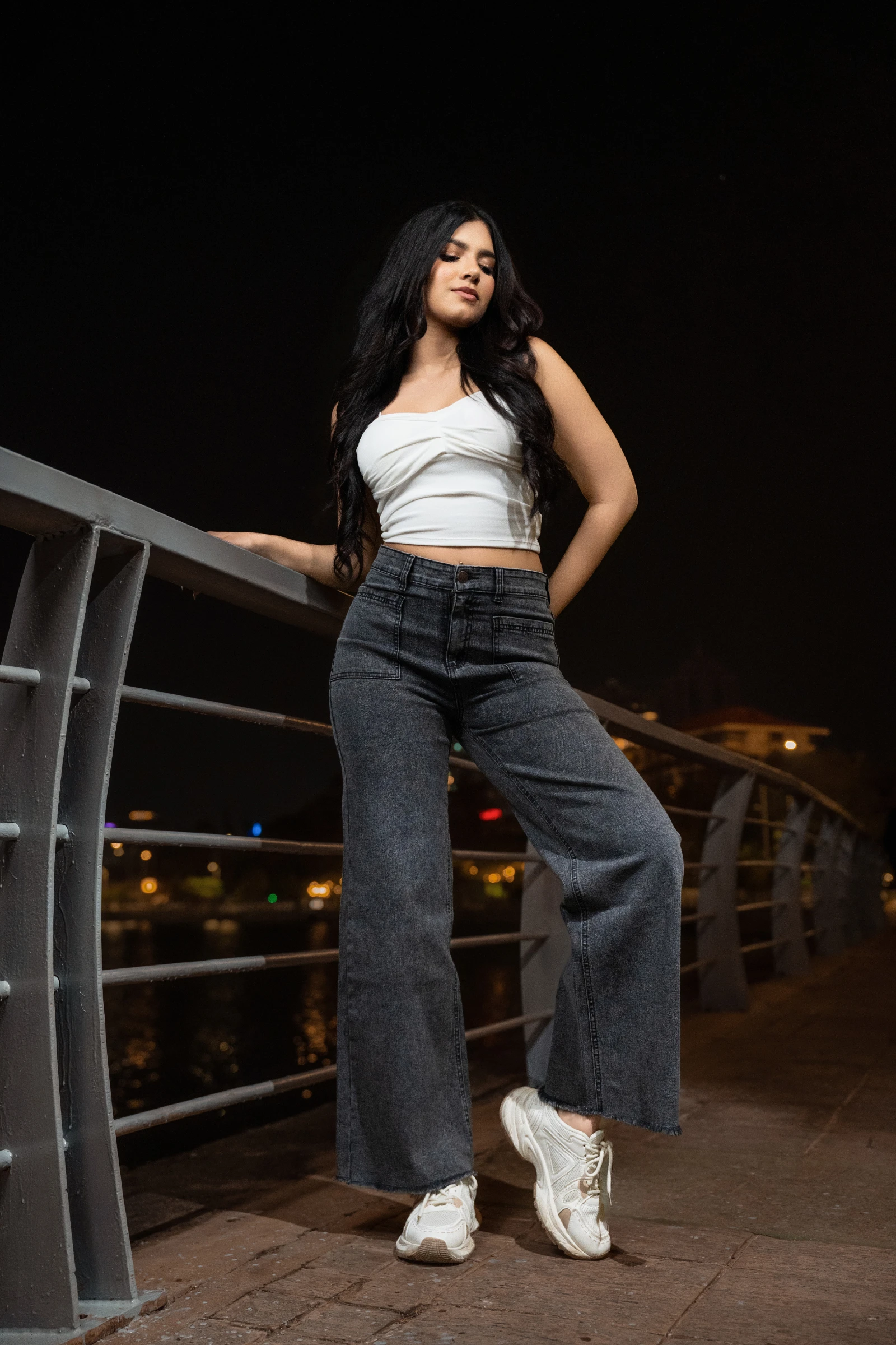 Introducing the Uptown Grey Wash Front Patch Pocket Jean. Crafted from premium denim in a sophistica...
