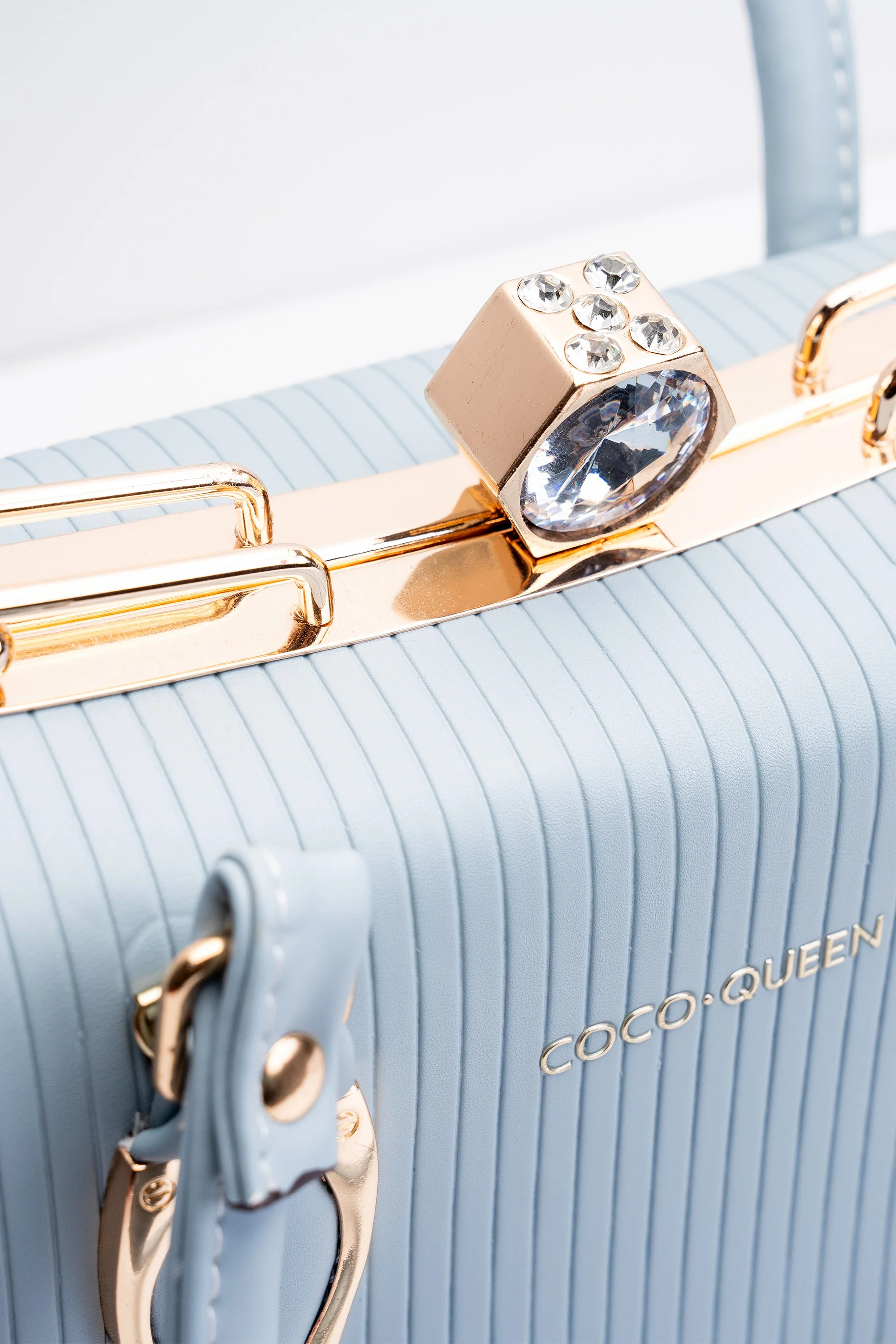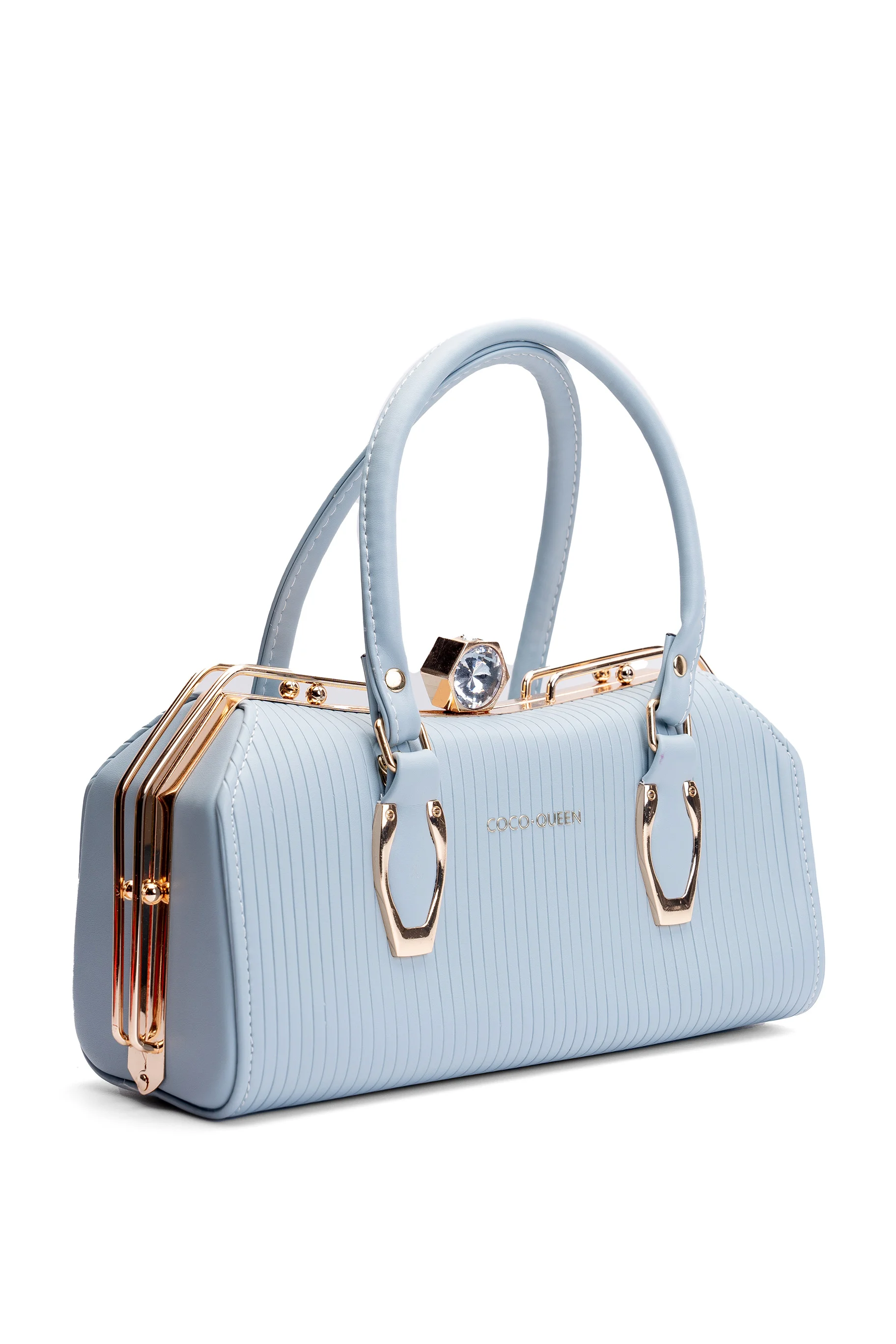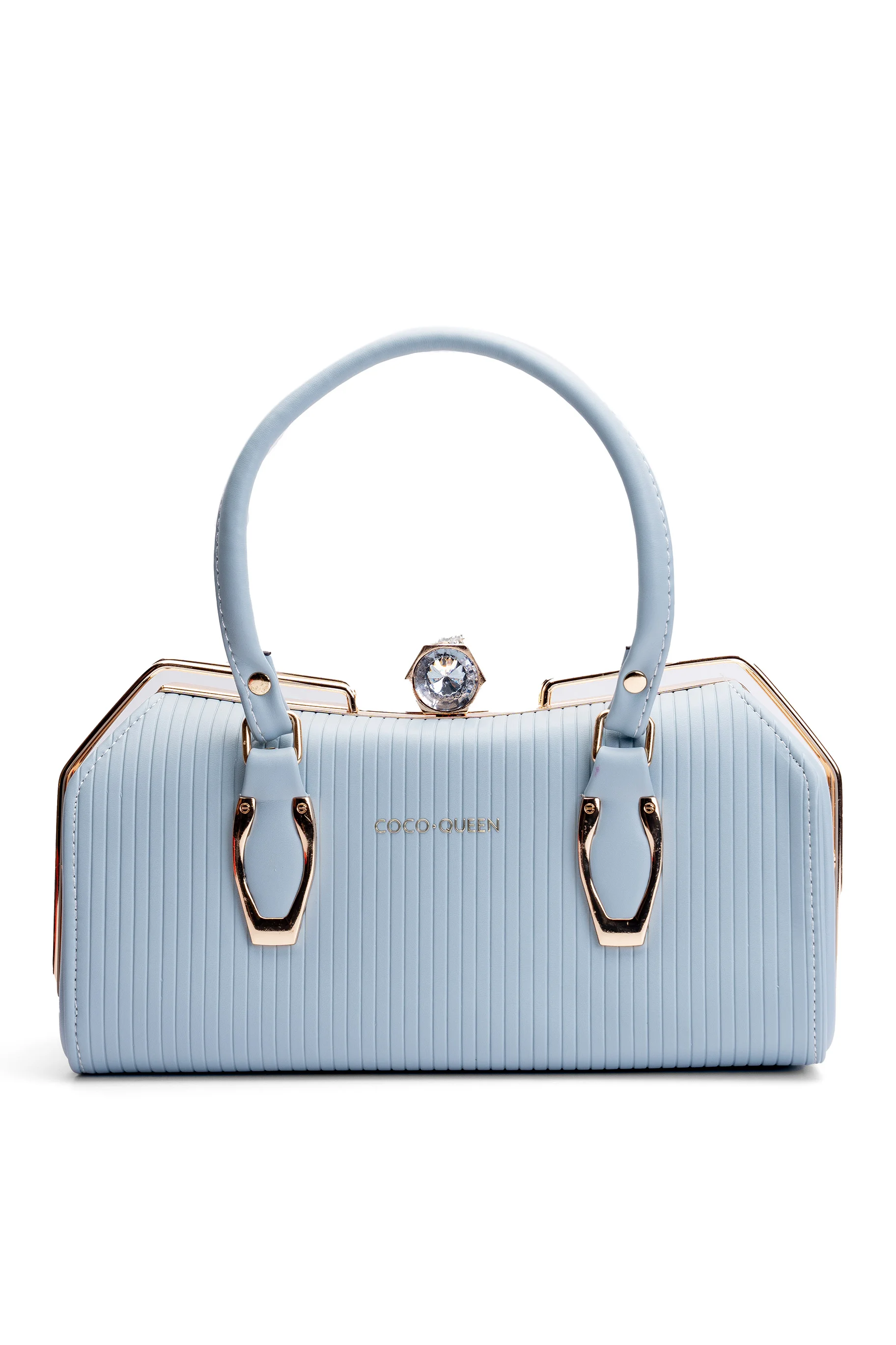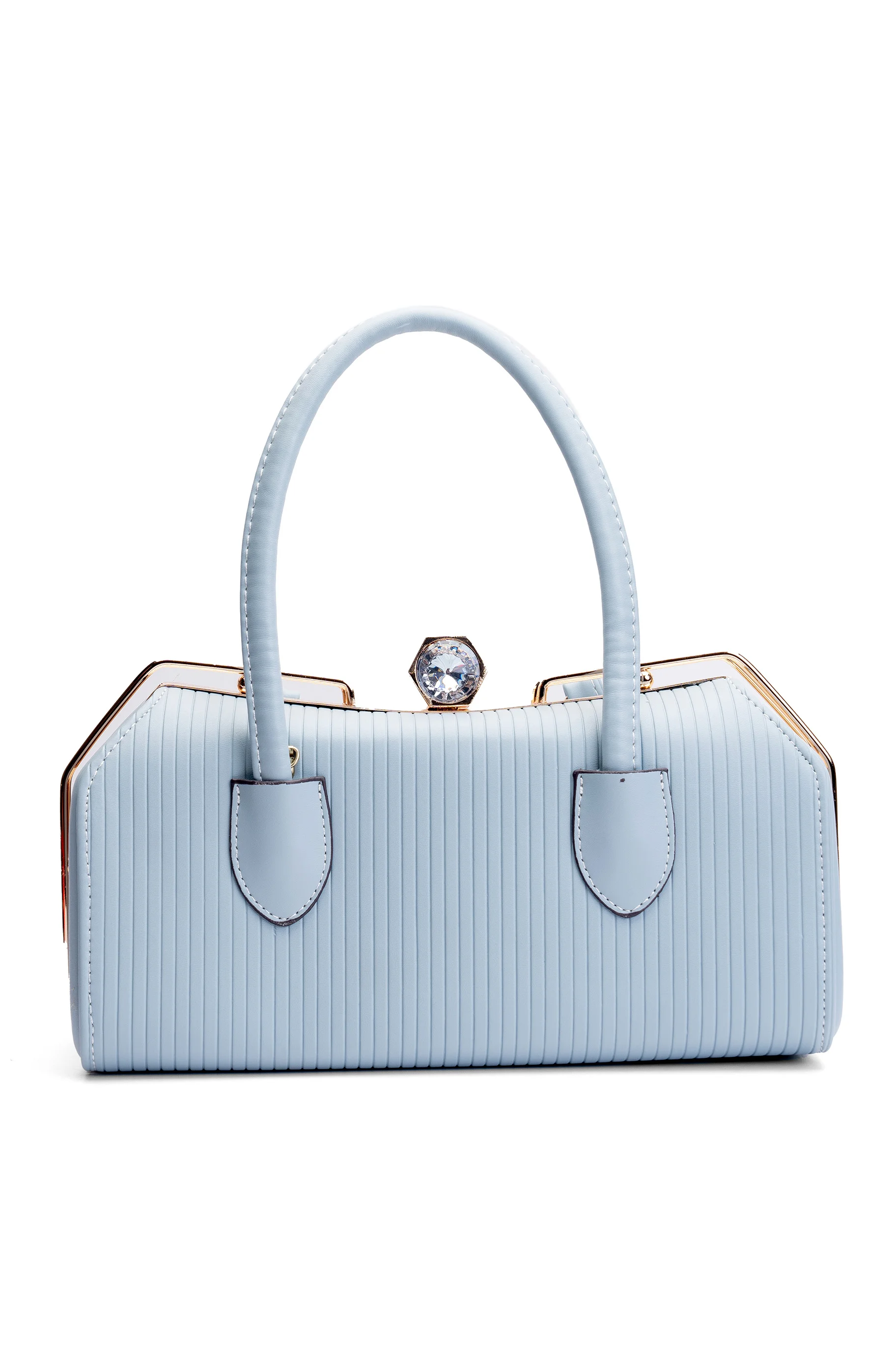 Double top handle Clutch lock closure Comes with adjustable strap (detachable) Material: PU Leather Depth (inch): 6.5 Width (inch): 5 Length (inch): 9