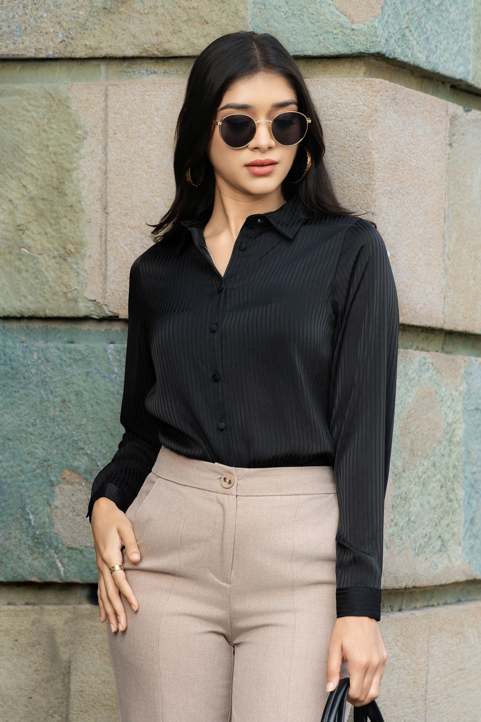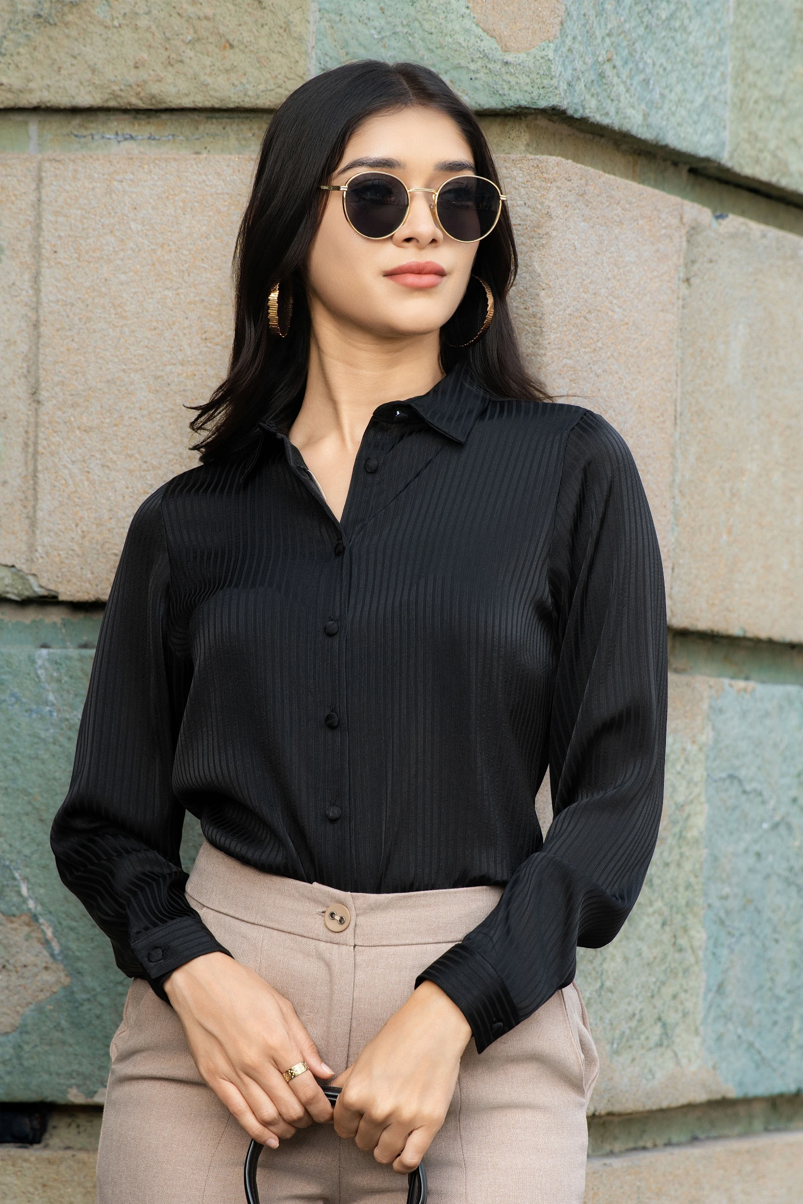 Uptown Line Textured Black Collor Top