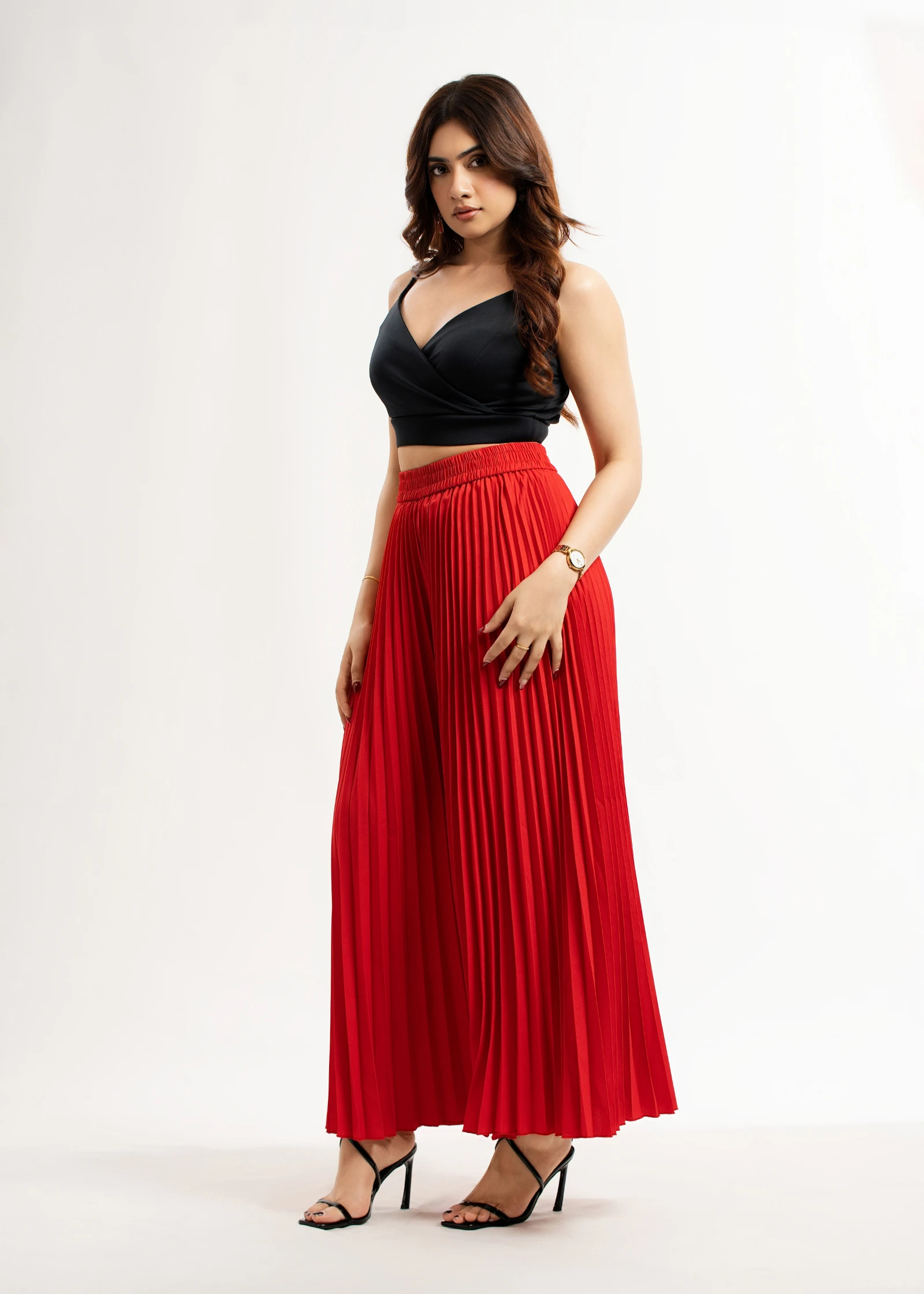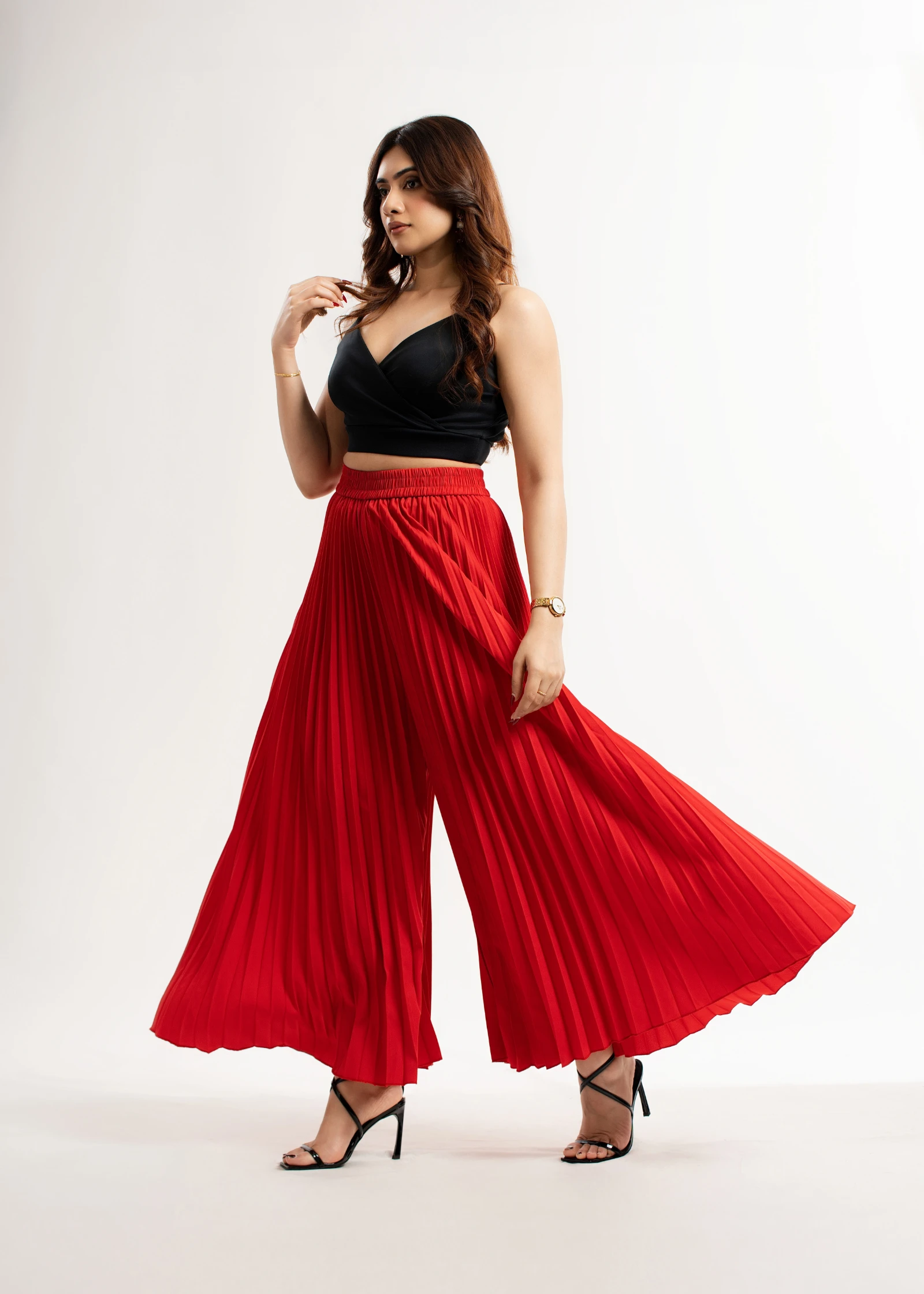 Effortlessly chic and undeniably stylish, the Uptown Red Pleated Palazzo Pant is your new go-to for ...