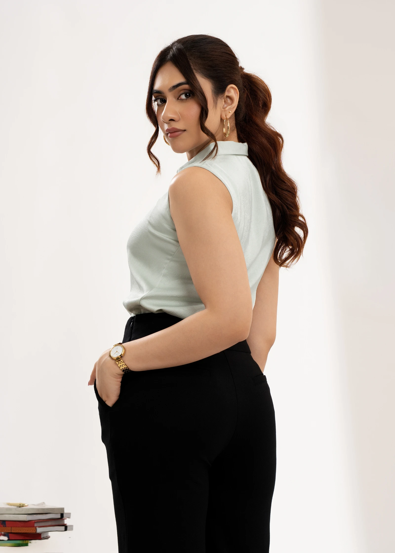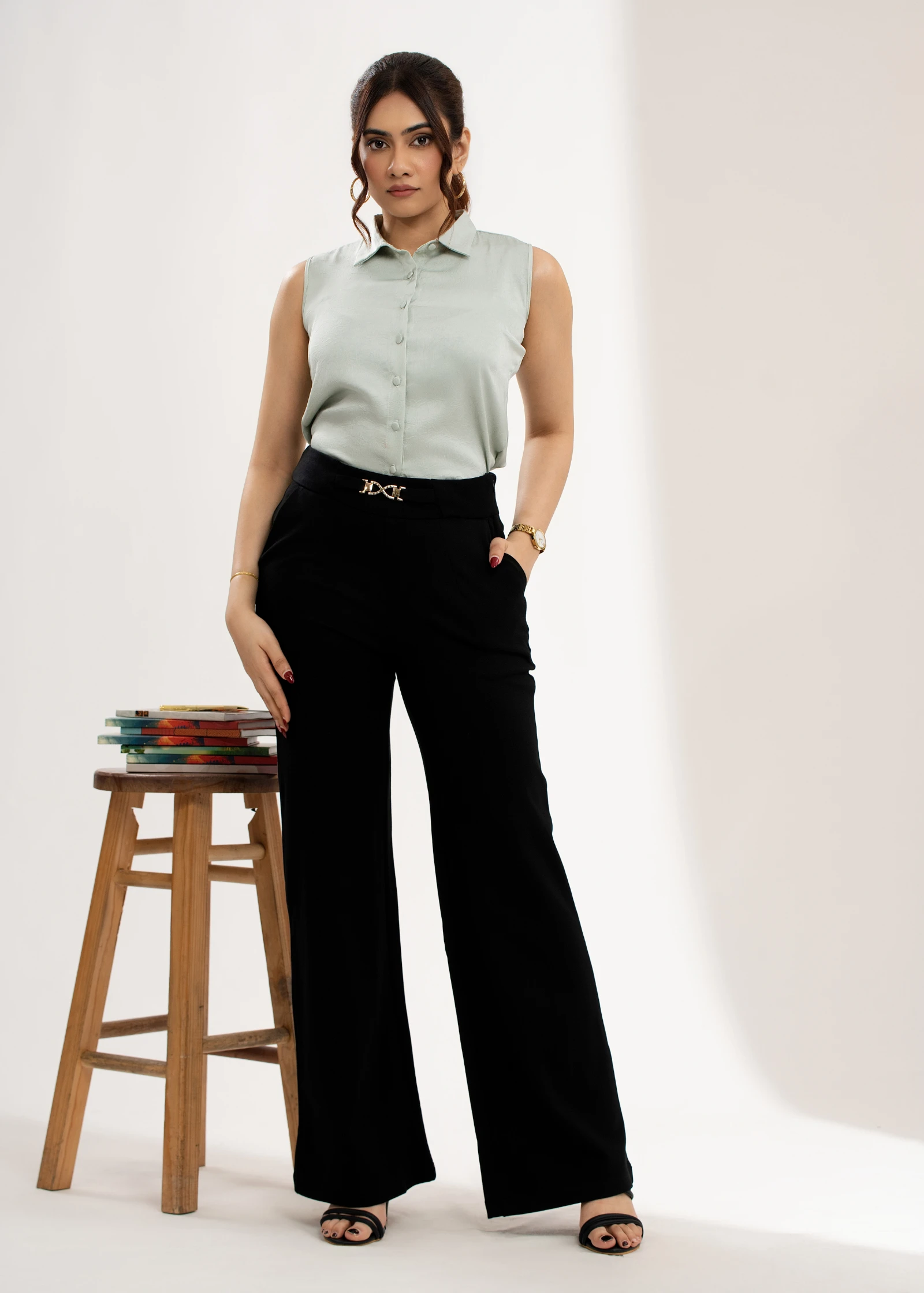 Elevate your professional wardrobe with the Uptown Sleeveless Basic Formal Top. This essential piece...