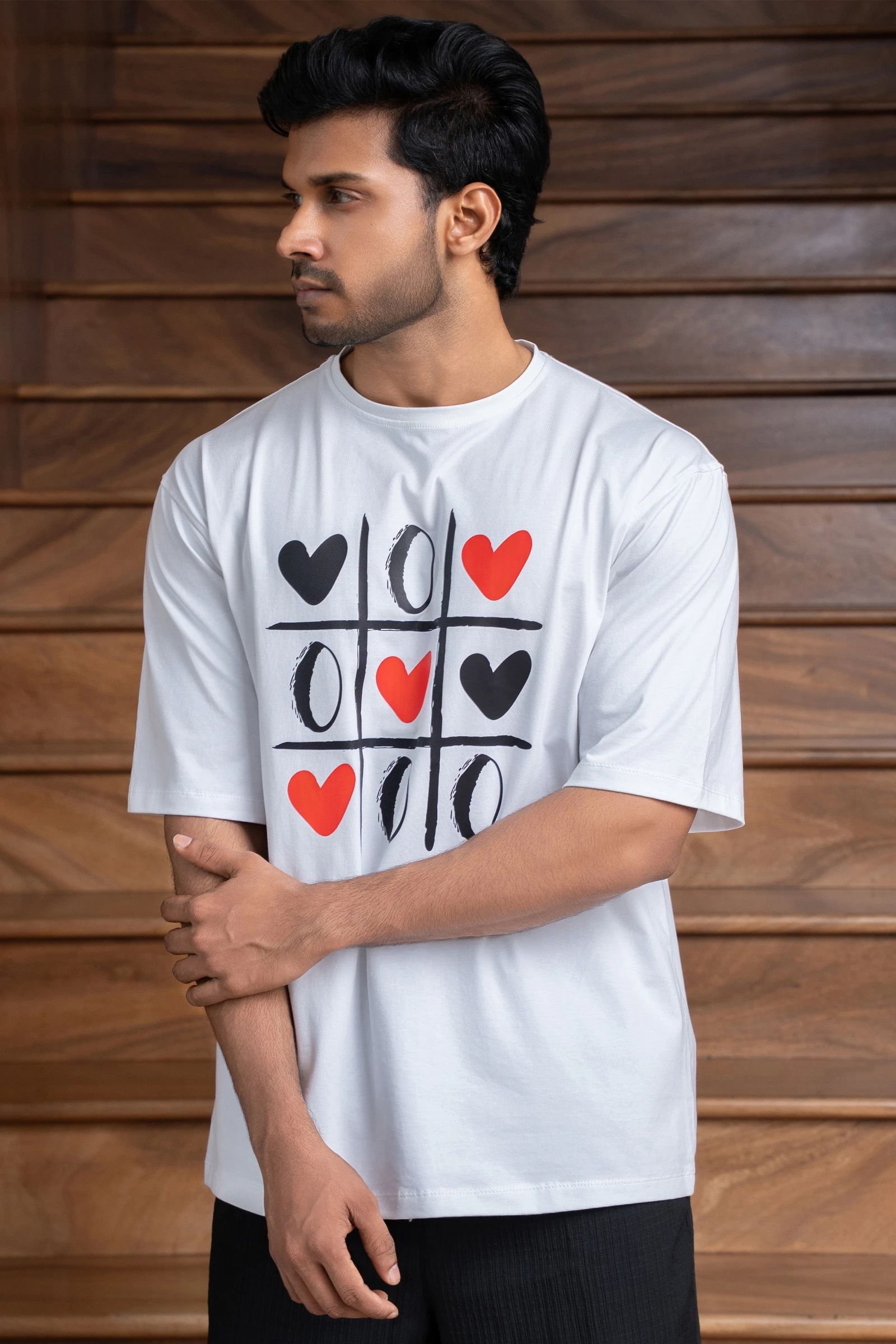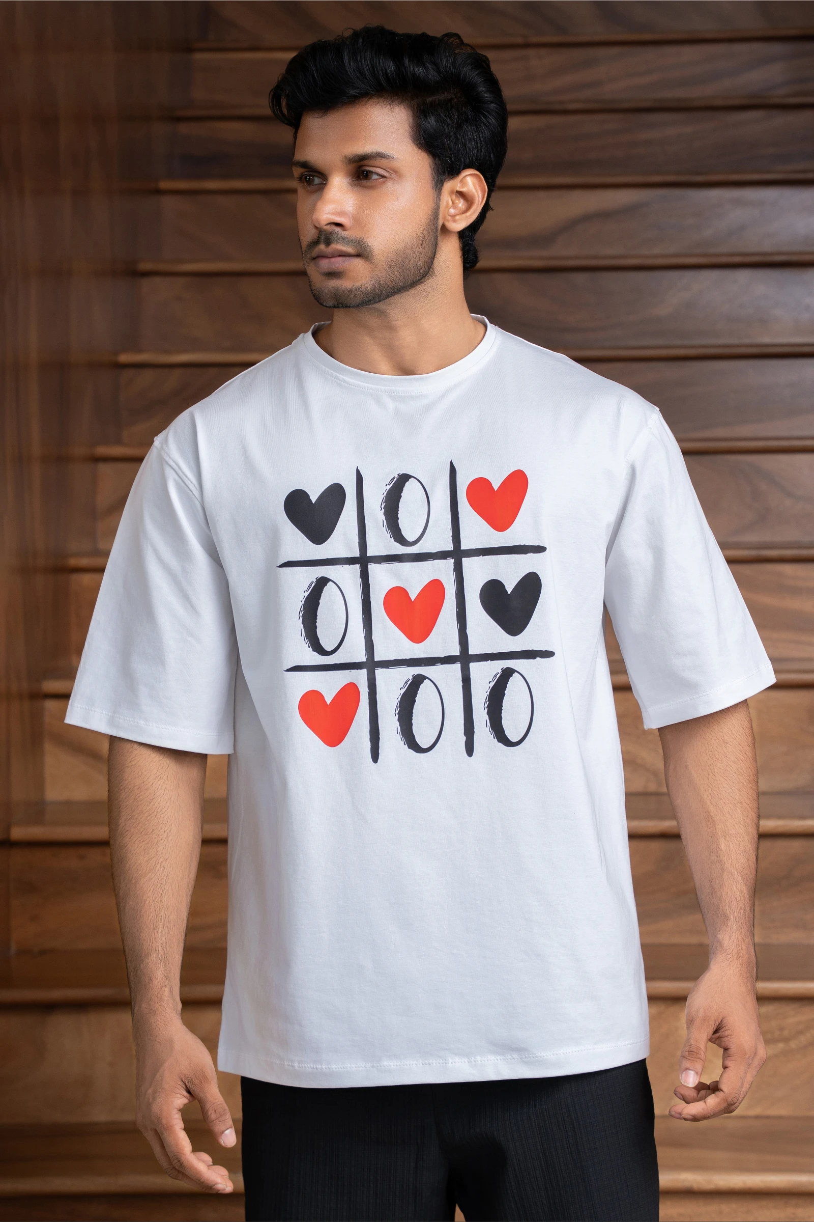 **Uptown Tic Tac Toe Hearts Unisex T-Shirt (Men)** Classic game, elevated style. This unisex t-shir...