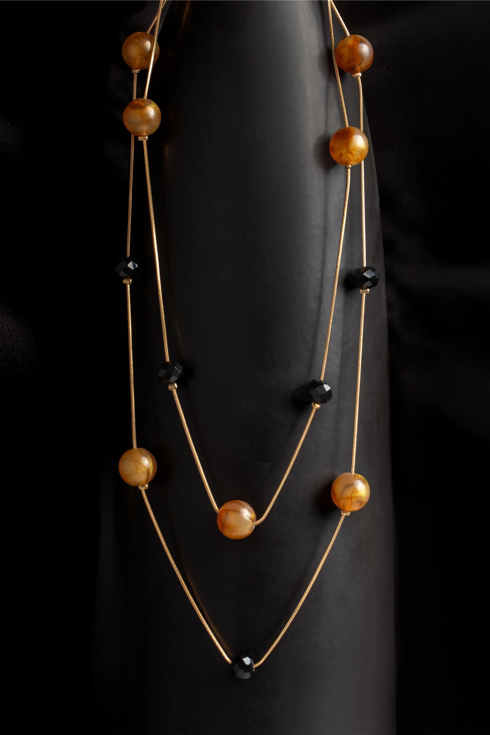 Elegant vintage necklace featuring gold and black beads. Long length, perfect for adding a touch of...